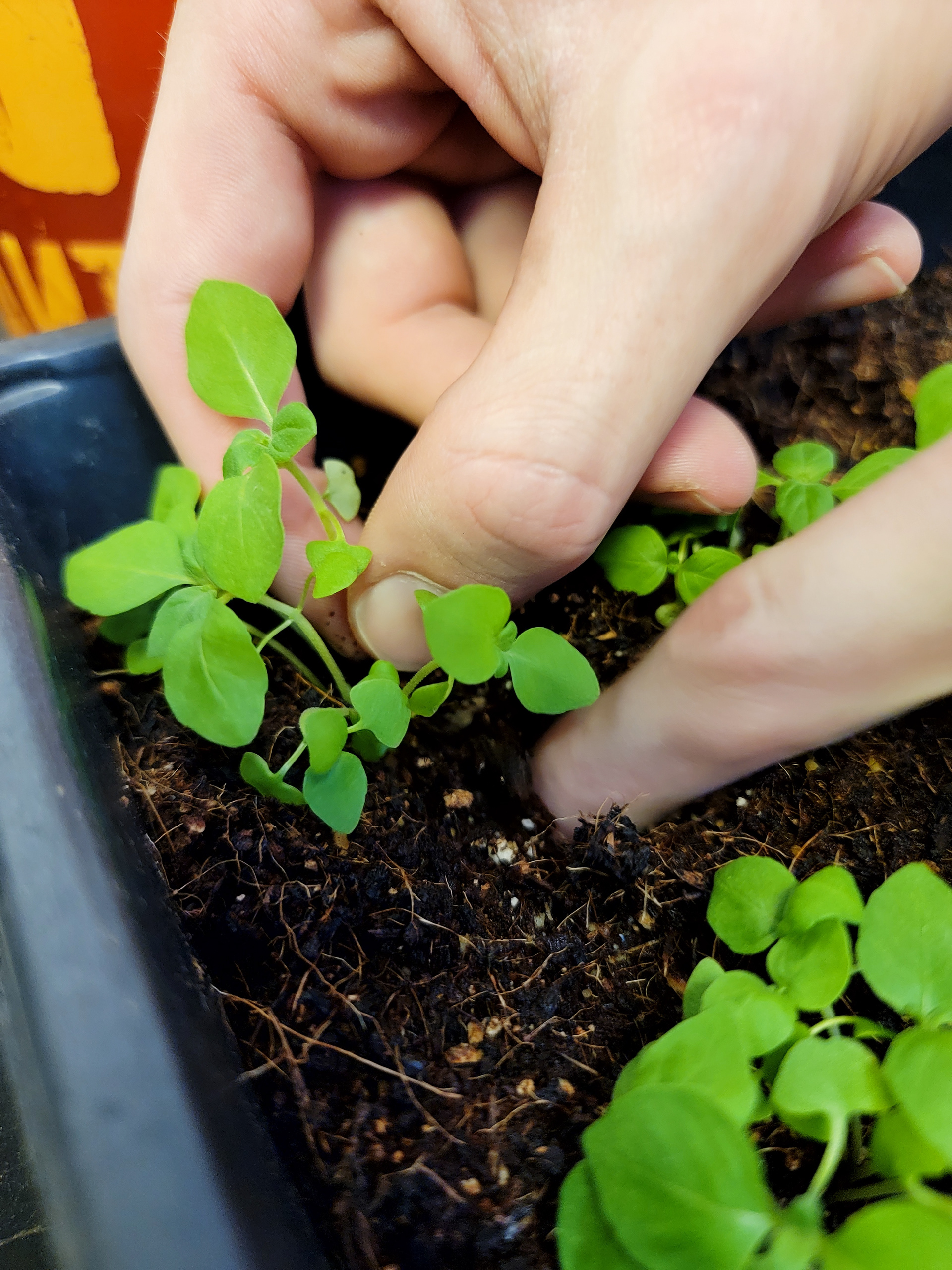 This patch of dirt is so dry and full of clay that it is thirsty non-stop. I am going to leave a hose on drip in one of the gutters so that the new roots of the seedlings don't get too dehydrated. There is this hot pink seedling/weed* that is taking over. I need to ask Nico at Coop about it - is it invasive or is it indigenous to Turtle Island? ... cause I think the garden needs less of it... it is really taking over.